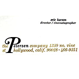 This company served as a personal loan-out corporation for the services of Eric Karson as a producer, director, and writer of motion pictures and television shows.